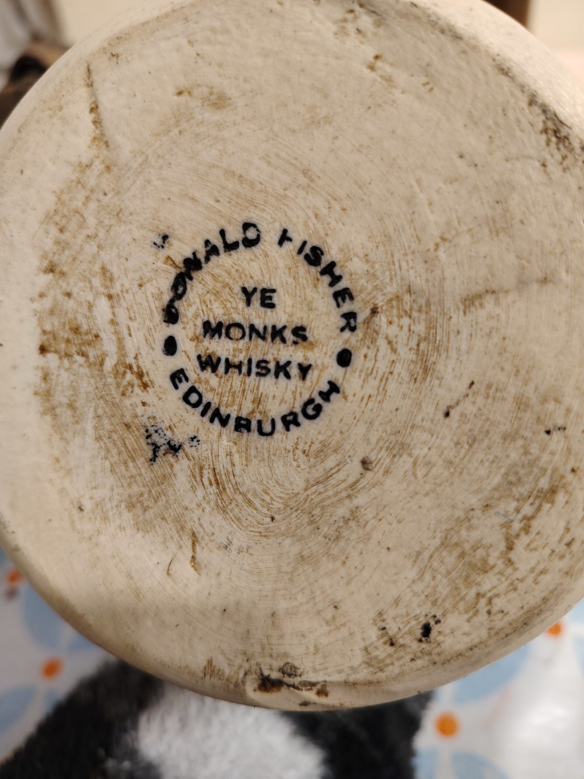 Inicio / Botellas / Jarra Whisky Jarra Whisky$15.000 Comprar por WhatsApp Descripción Descripción Jarra Whisky Vintage Donald Fisher”Ye Monks Whisky”. Cerámica Wade Edimburgo Escocia Años 60. Medidas 21 cms alto.